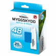En gaspatron håller för 12 timmars användning och varje matta ger 3 timmars skydd. Paketet innehåller 4 st gaspatroner och 12 st mattor som totalt ger 48 timmars skydd mot myggorna.