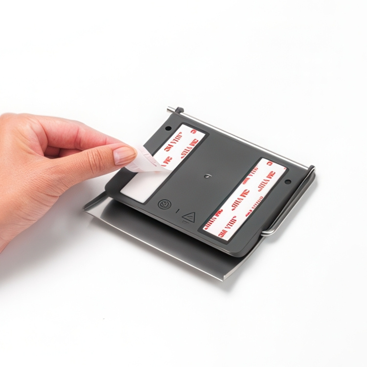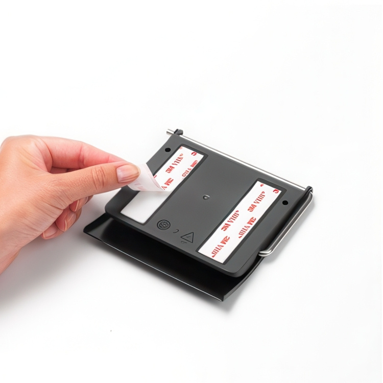 - Tryck fast den med den självhäftande tejpen på en slät yta eller