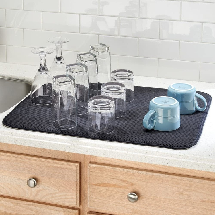 Ställ dina vinglas, skålar, kastruller och nappflaskor på torkmattan upp och ner och de torkar fukt- och fläckfritt.