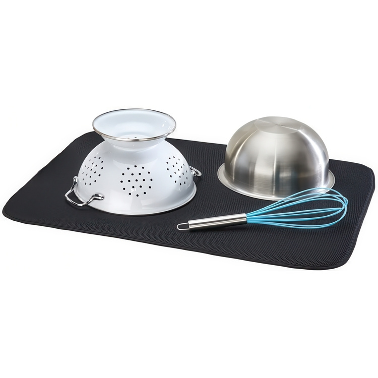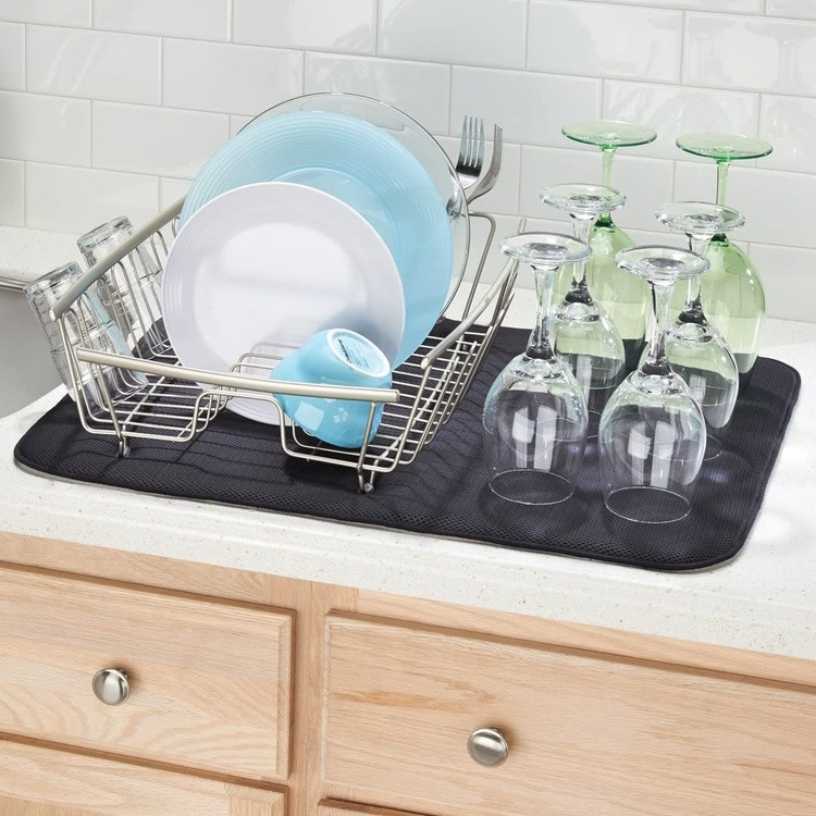 Torkmattans finurliga konstruktion gör att disken torkar snabbare, fukt- och fläckfritt. Dessutom står disken stadigt på den tunna mattan. Torkmattans höga uppsugningsförmåga hindrar vattnet från att rinna ut på diskbänken.