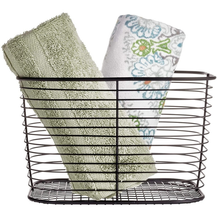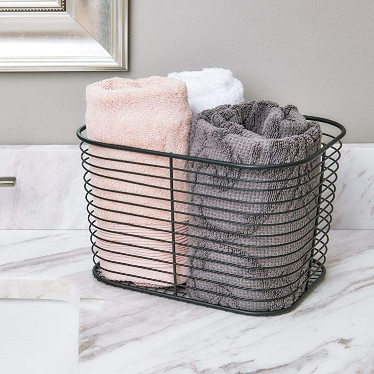 Ordning och reda med en praktisk förvaringskorg i metall.