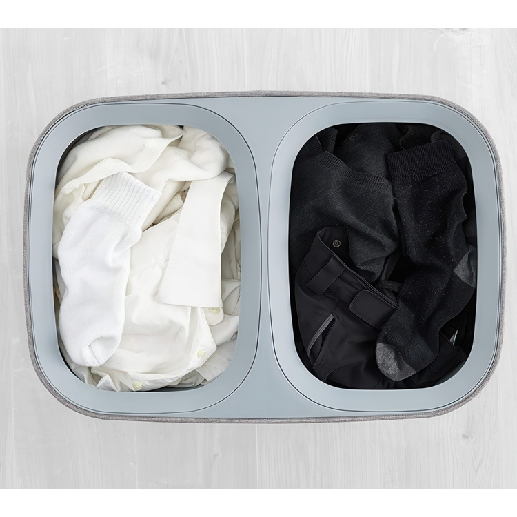 En stabil tvättkorg med två fack så att det blir enkelt att sortera tvätten.