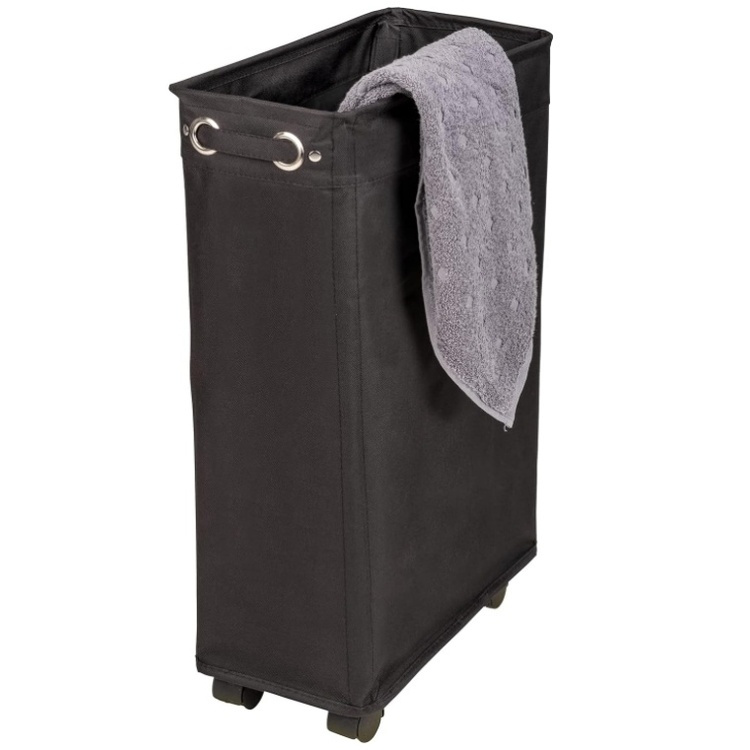 Tvättkorg på hjul, Extra Smal, CORNO, PRIME 18,5 x 40 x H 60 cm, Svart
