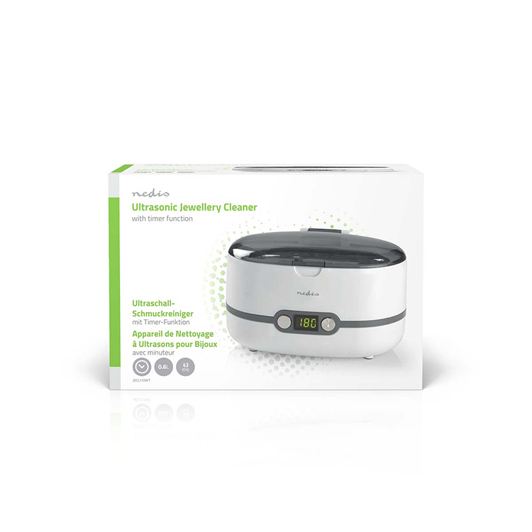 Med Nedis ultraljudstvätt för smycken rengör du enkelt ringar, örhängen, halsband och andra små föremål med endast vatten och ljudvågor. Enheten använder soniska ljudvågor på 43 kHz för att nå in i svåråtkomliga delar och lösa upp envis smuts. Den tydliga LED-displayen med digital timer låter dig anpassa rengöringstiden efter behov, från 1,5 till 8 minuter. En praktisk innerkorg gör det enkelt att sänka ned och ta upp föremål. Rengöringen sker i en rymlig 600 ml-tank.