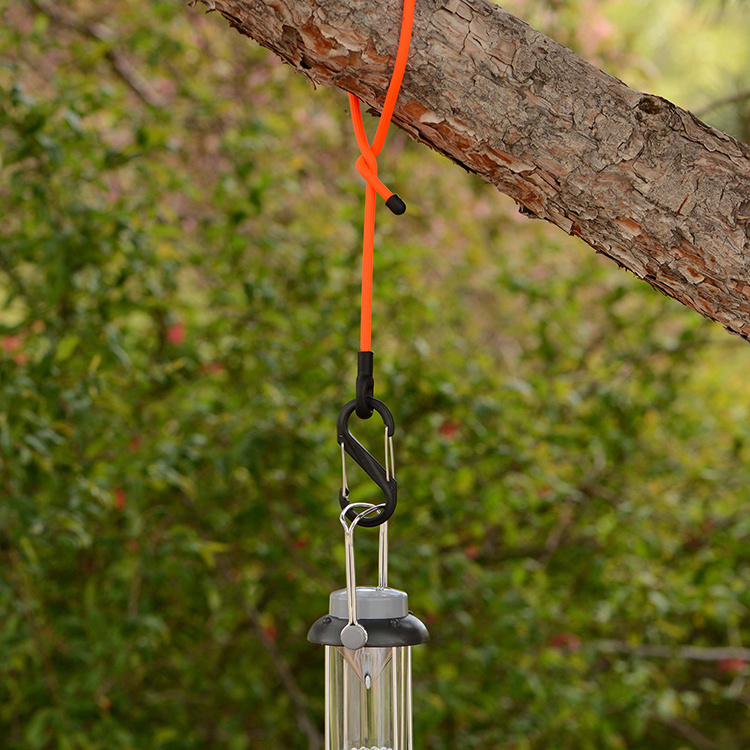 Den integrerade karbinhaken gör det enkelt att snabbt fästa eller hänga upp saker. Haka fast bandet i en krok, en gren eller ett räcke och vira den böjbara delen runt det du vill fästa. Perfekt för sladdar, verktyg och campingutrustning – eller för att hänga upp en lykta eller fågelmatare i trädgården.Starkt gummihölje
