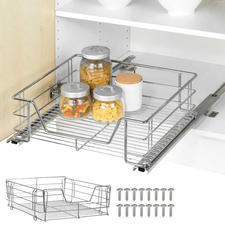 Utdragbar hylla för köksskåp, SLIDING RACK, 51 x 40 x H 18,5 cm, Silver