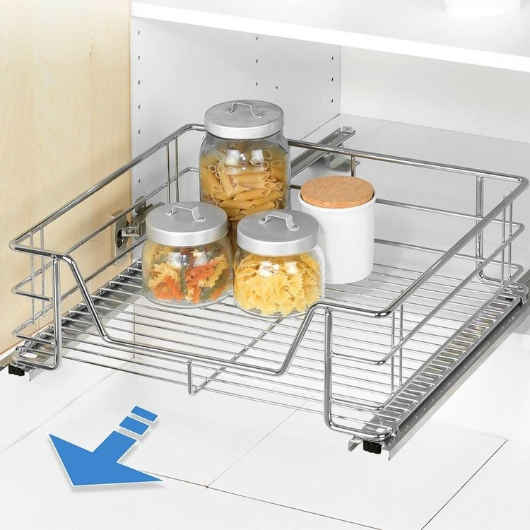 Utdragbar hylla för att lättare komma åt vad du förvarar i skåpet. En extra hylla som skapar ytterligare förvaringsutrymme i köksskåpet