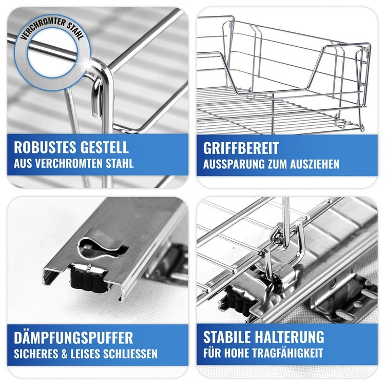 Den utdragbara hyllan är av hög kvalitet. Tillverkad av förkromat, högpolerat stål.