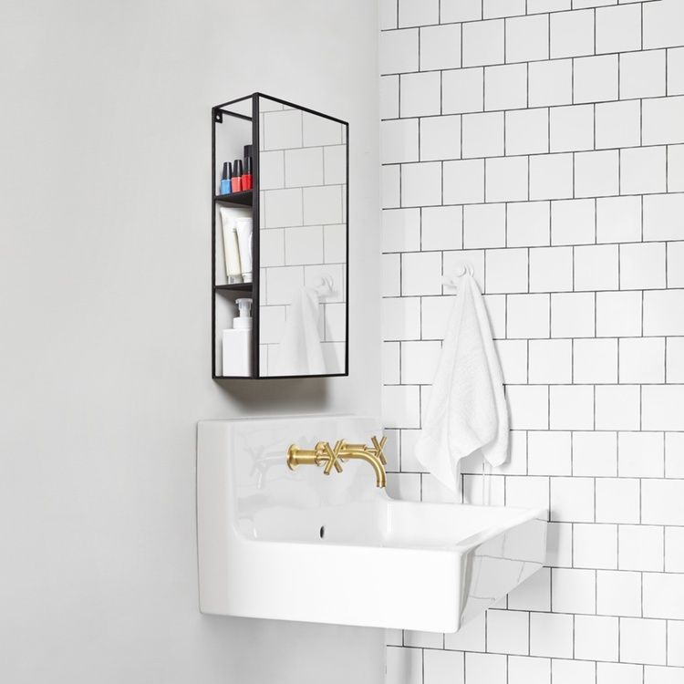 Väggförvaring med spegel, CUBIKO MIRROR, 30,5 x 13 x H 61cm, Umbra, Svart