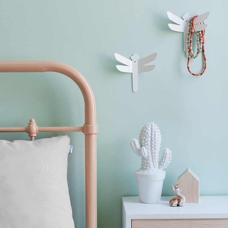Väggkrokar i metall, 2 st trollsländor, WHITE DRAGONFLY, 14 x H 14 cm, Vita