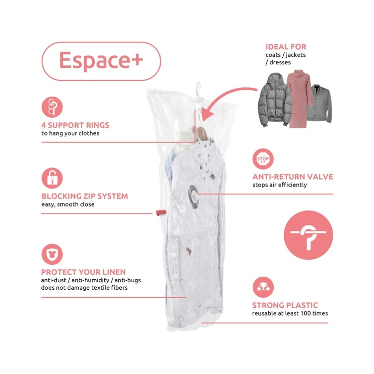 Smart vakuumpåse med galge. Skapa och spara utrymme i din garderob.
