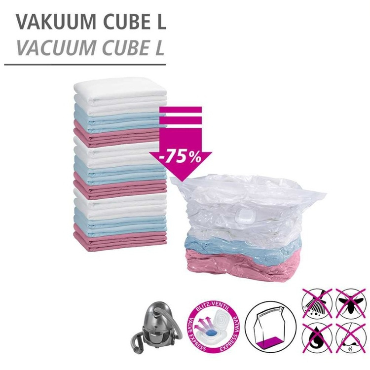 Den här stora kubformade vakuumpåsen perfekt för utrymmesbesparande förvaring.