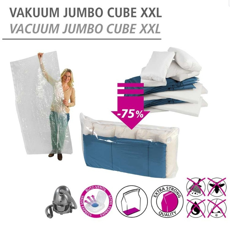 Den här extra stora kubformade vakuumpåsen perfekt för utrymmesbesparande förvaring.