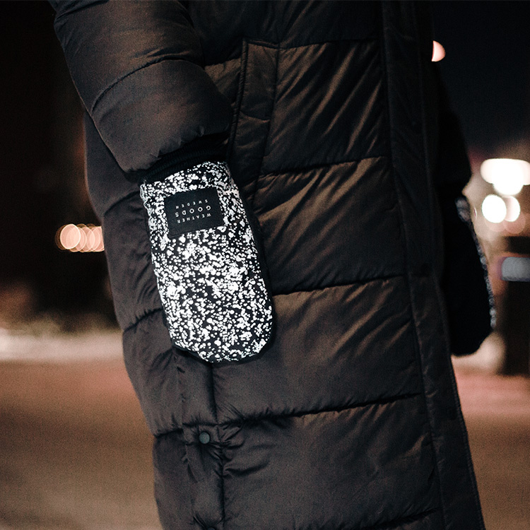 Vantarna finns i två storlekar och den reflekterande ovansidan i flera sorters reflekterande tryck. Modellerna ”Stänk” och ”Prickar” är dessutom vattentäta.