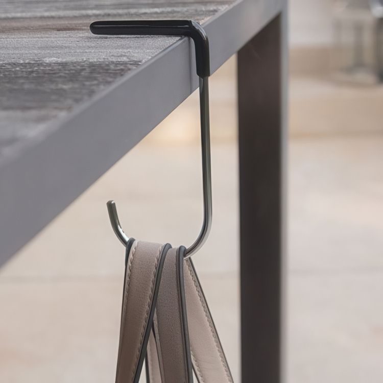 En stabil krok i metall som hjälper dig hålla ordning på väskan.