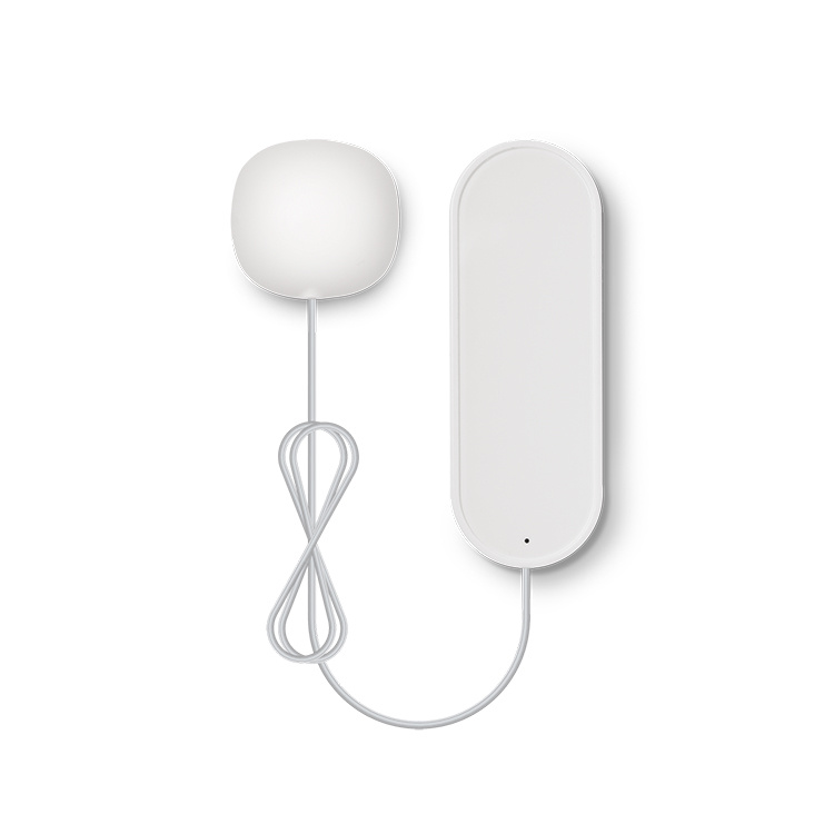 Vattenlarmet består av två delar: en sensordel som placeras där risken för vattenläckage finns, och en detektordel som ansluts via en 1,3 meter lång kabel. Den kompakta sensorn är enkel att placera även i trånga eller svåråtkomliga utrymmen, exempelvis bakom vitvaror eller under rör. Kabelns längd gör dessutom att du har stor frihet vid montering. Se till att placera detektordelen på ett ställe som inte kommer i kontakt med vatten, exempelvis på en vägg.Notiser direkt till mobilen vid vattenläcka