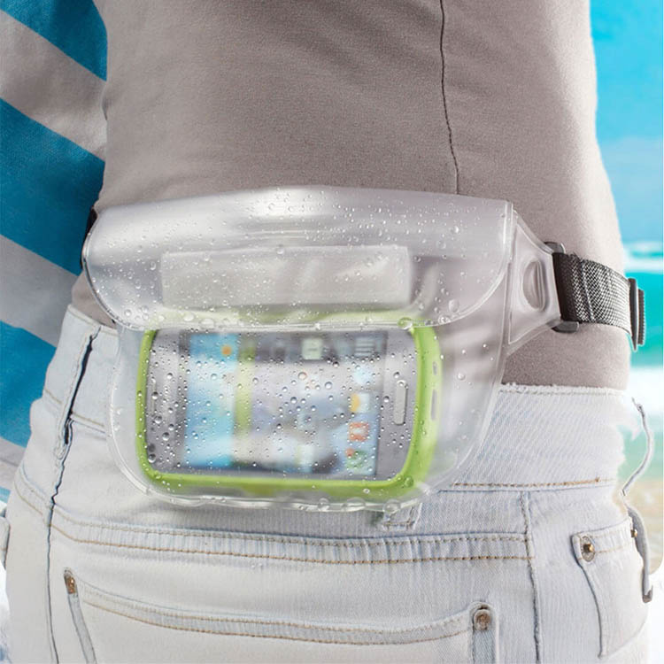 En vattentät midjeväska som skyddar mobil, nycklar och andra värdesaker – perfekt i regn, på paddelturer och under alla vattennära äventyr. Den flerlagrade förslutningen och den extra kardborrefliken håller fukten ute, medan den genomskinliga fronten ger en enkel touchåtkomst till mobilen – perfekt för att exmpelvis byta låt. Med ett justerbart midjeband som kan anpassas mellan 66–99 cm sitter väskan bekvämt och tryggt i alla lägen.