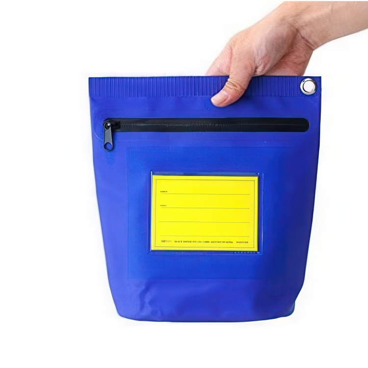 Fodralet kommer med ett vattentät blixtlås och en ögla som kan monteras på t ex en karbinhake .