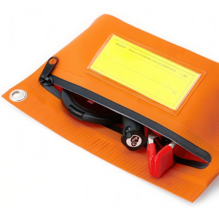Fodralet kommer med ett vattentät blixtlås och en ögla som kan monteras på t ex en karbinhake .