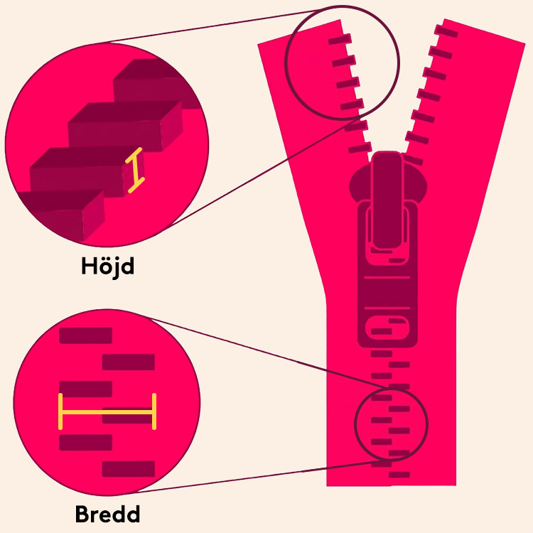 2. Mät din dragkedja! - Ta hjälp av bilderna samt filmerna och mät bredd och tjocklek på din dragkedja.